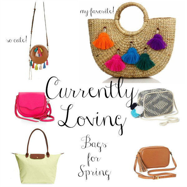 I absolutely LOVE bags! I love handbags, totes, clutches, beach bags, crossbody bags, and shoulder bags. I just love them all. I have always enjoyed shopping for a new bag but this time of the year is my favorite time. The colors are bright and fun and the styles scream warm weather! Who wouldn't be happy carrying that tassel tote to the beach this summer?! It's so cute! After I put together this collage, I realized that almost every bag has tassels on it and that's ok with me! I love tassels and pom poms. They add a whimsical and cheery touch to your outfit. I have been on the hunt for the perfect HOT pink bag and I think that crossbody below might just be the one. What do you think?! I titled this post bags for spring... but these bags are also perfect for summertime too. I can't wait to add a new bag to my warm weather wardrobe!