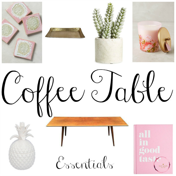 My coffee table essentials include a gold tray to organize all of my accents, a focal pineapple point, coasters, an interesting book, a candle, and a plant. I like to keep my decor pretty simple so only and in a similar color palette. I love pink, gold, and white together! What are your coffee table essentials?!